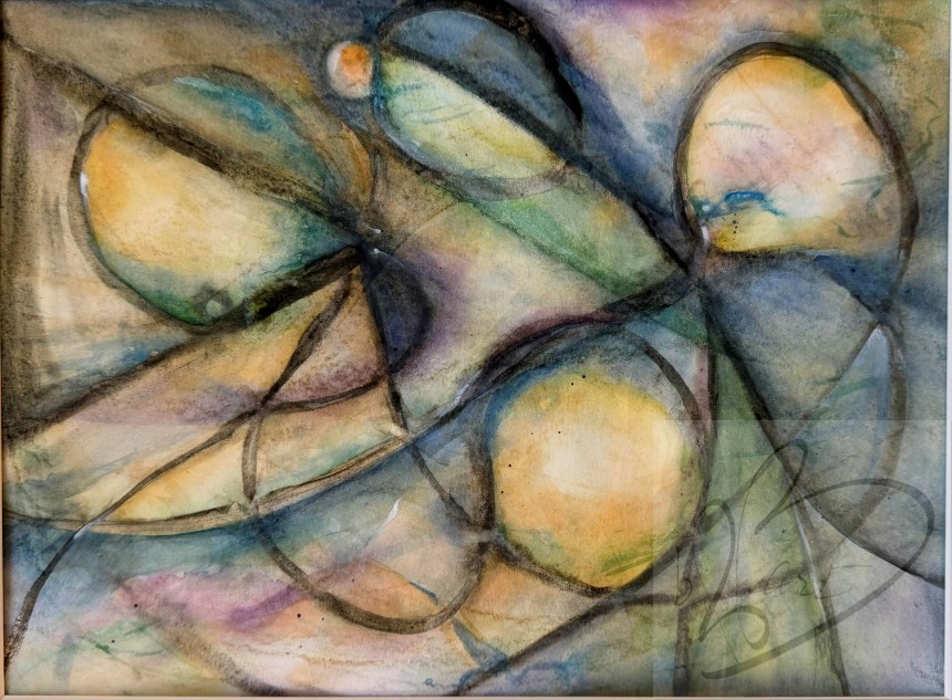 "Wheels of Life" is 6 1/2 " x 10" on 140 lb. cold pressed paper. Combinations and hints of other lifetimes, this abstract brings you into...